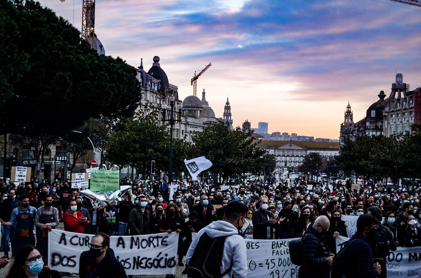 A manifestação contra as restrições impostas à restauração juntou centenas de pessoas no Porto e levou a breves desacatos com a polícia.